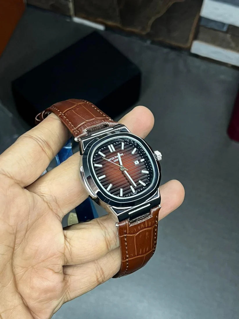 Patek Nautilus Leather Strap Master Lock - Full Brown