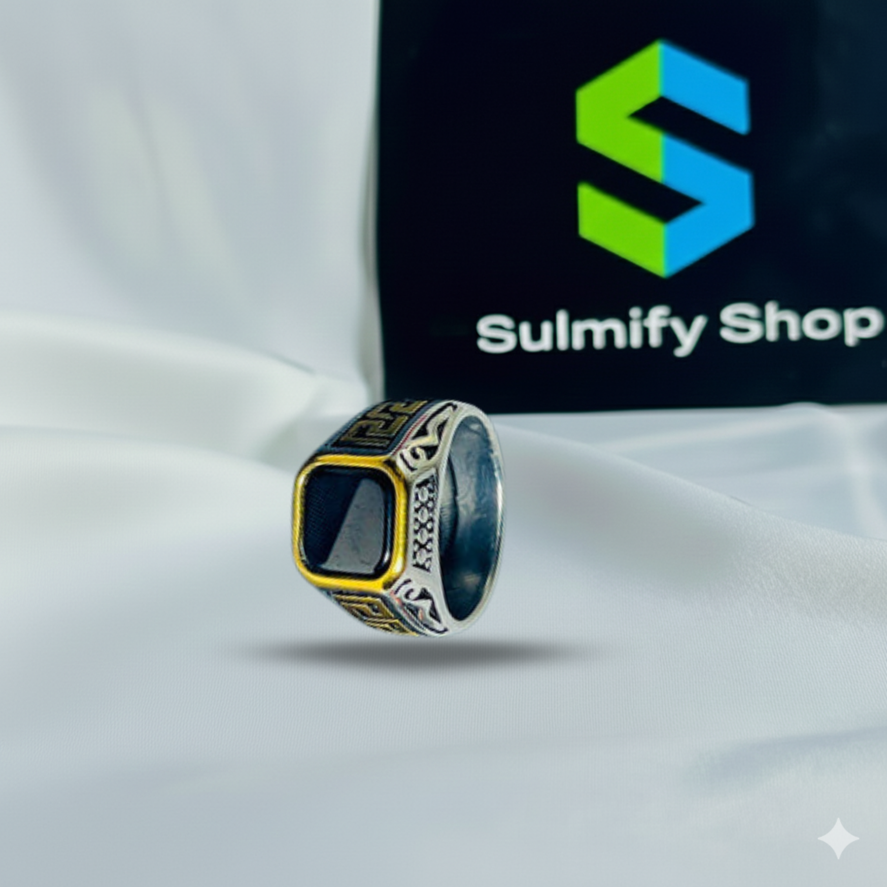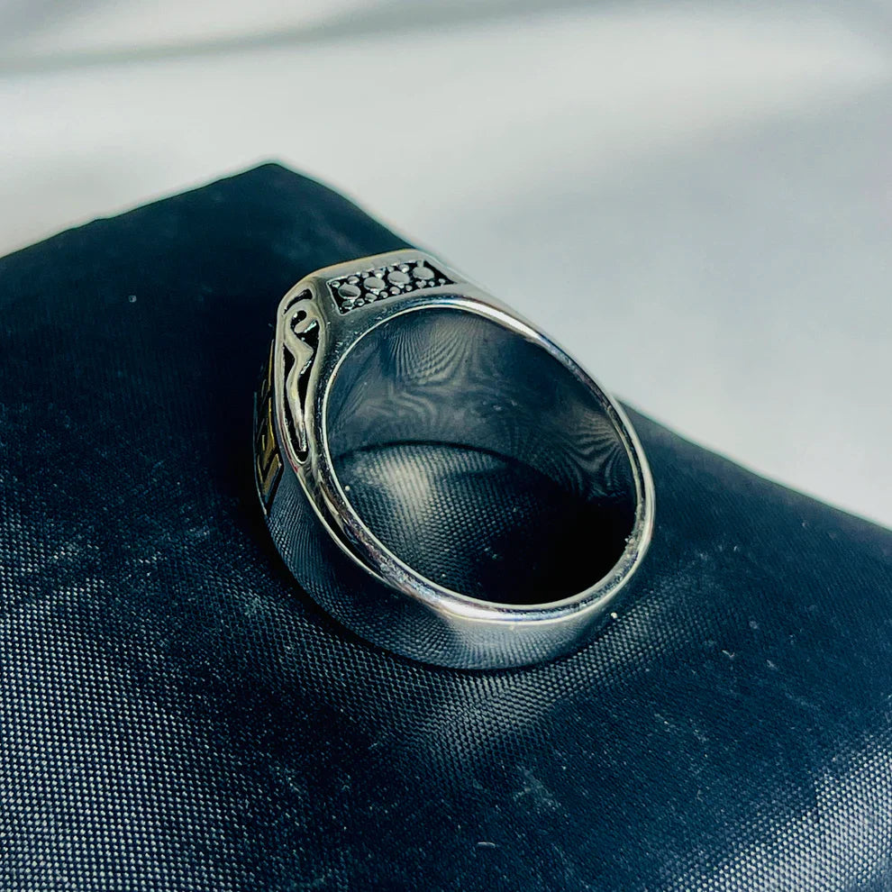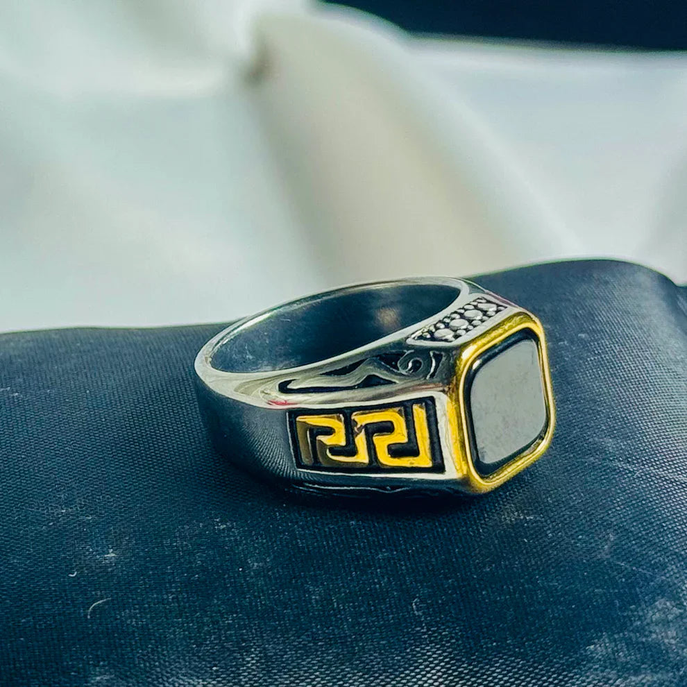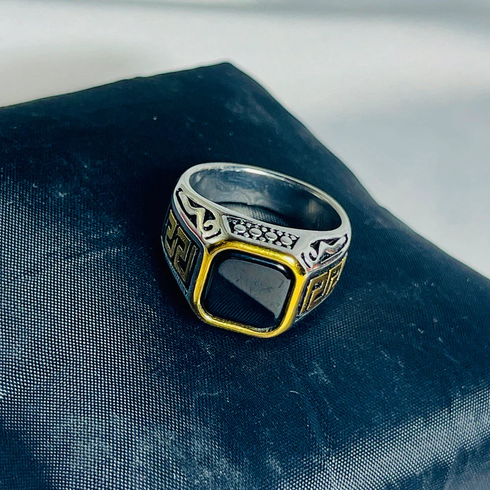 Black Stone & Golden Accent Athenian Legacy Silver Ring